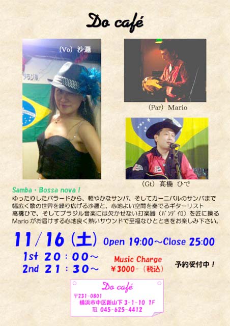 ◆2013年11月12日(火) 【毎月第2火曜日】〜Samba Bossa Novaで遊ぼう!!(楽器・歌をメインに)〜@Espeto Brasil(大塚)